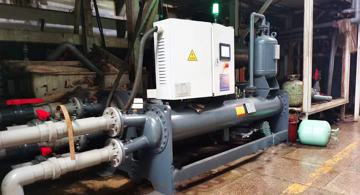 水冷冷水機利用殼管蒸發(fā)器使水與冷媒進(jìn)行熱交換,冷媒系統(tǒng)在吸收水中的熱負(fù)荷,使水降溫產(chǎn)生冷水后,通過壓縮機的作用將熱量帶至殼管式冷凝器,由冷媒與水進(jìn)行熱交換,使水吸收熱量后通過水管將熱量帶出外部散失。